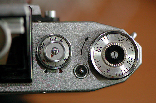 小轉盤上的三角形指向紅色的時候,是1/25以下的慢速快門檔速